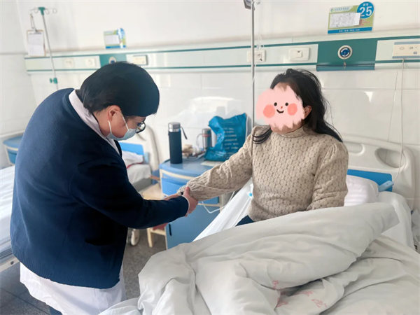 近日,在我院妇产科病房,刚刚做腹腔镜巨大卵巢囊肿切除术的李女士,一脸轻松地对妇科特聘专家王斌教授和医护人员表达着她喜悦的心情。