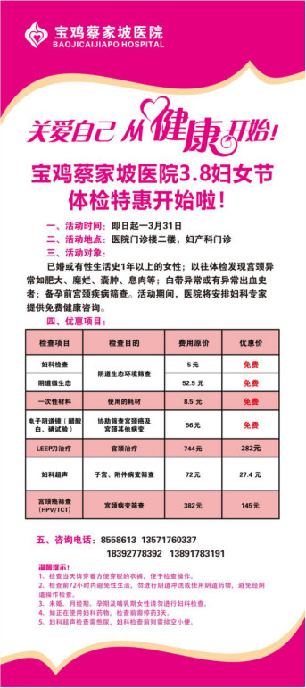 庆三八·送健康——宝鸡蔡家坡医院3.8妇女节体检特惠开始啦!